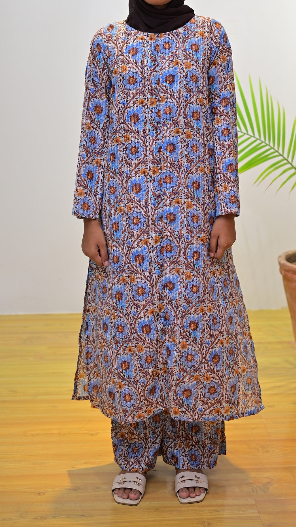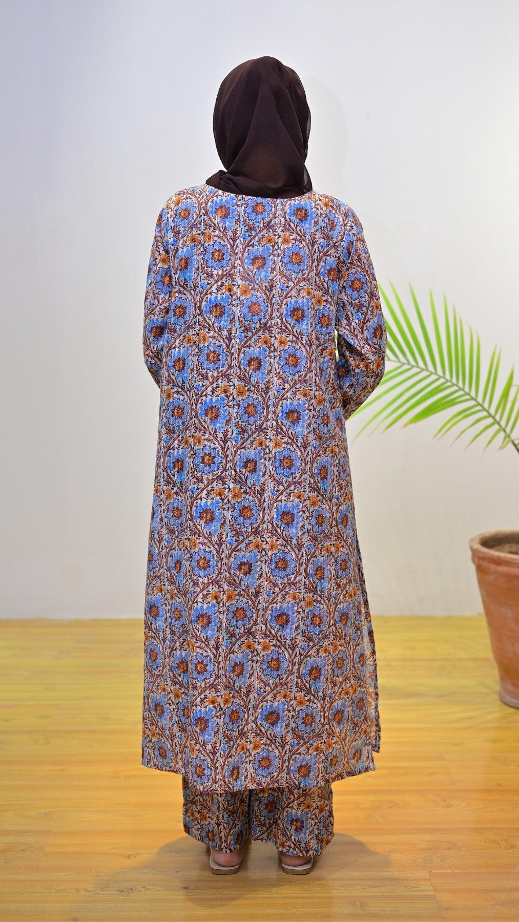Meet Aquafern, your go-to comfort wear. A plain sky-blue 2-piece suit with a classic kurta and farshi shalwar cut, made from breathable cotton for airy movement. Perfect for casual errands, lounging, or subtle styling on a sunny day.