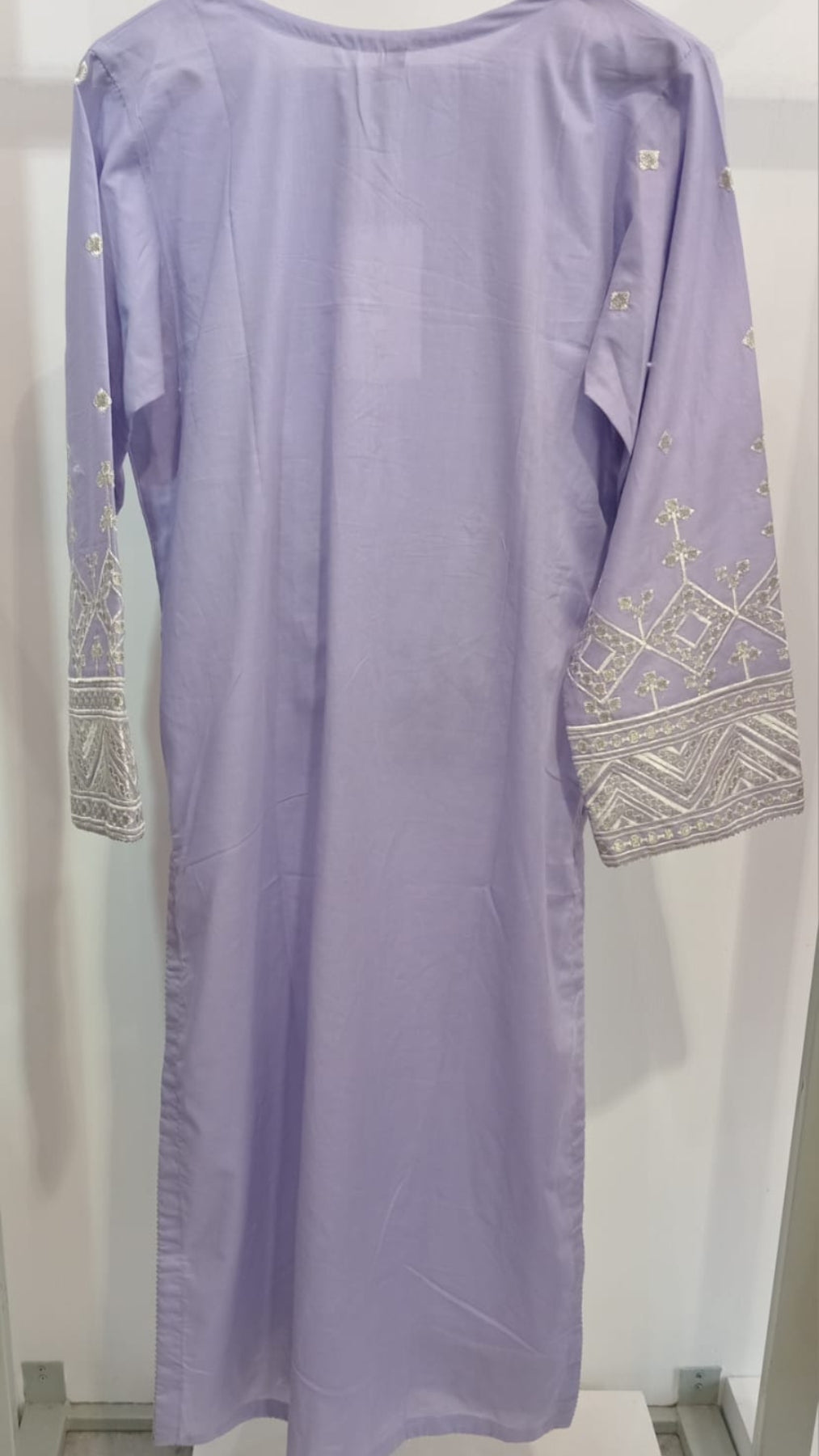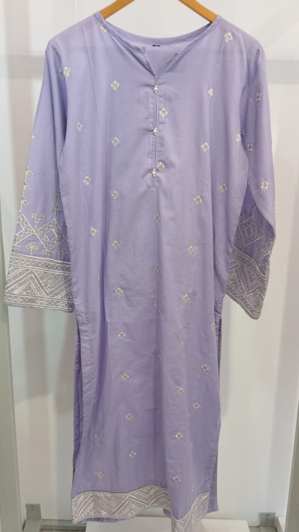 Soft, breezy, and beautifully detailed – Baadal Sitara is a pastel lilac kurta adorned with delicate white embroidery and pearl button details. Crafted for daily wear with an elegant twist.