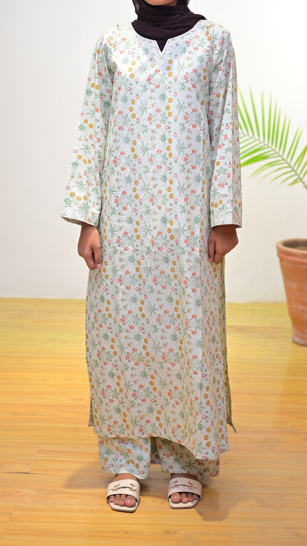 Bahaar brings breezy vibes with its subtle green base and playful floral patterns. This lightweight 2-piece suit is ideal for day outings or casual comfort with style.