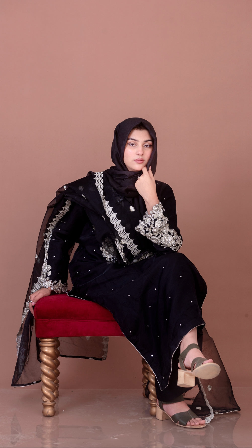 Gracefully elegant and timeless — Shab e Noor is a rich black ensemble that blends tradition with modern charm. Intricately embroidered sleeves and a delicately embellished dupatta make it perfect for festive evenings and Eid gatherings. Crafted with love using soft, breathable fabric that drapes beautifully.