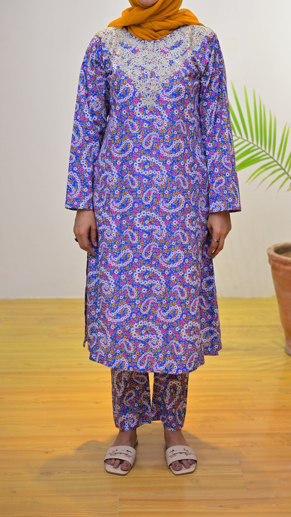 A lively burst of florals and soft tones, Phoolon Ki Zubaan captures spring in every thread. The neckline embroidery adds finesse to its breezy silhouette, perfect for casual gatherings and effortless daily wear.